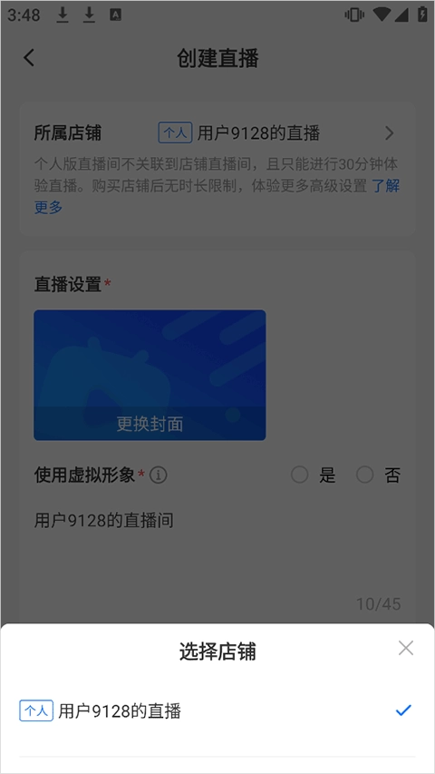 4、添加店铺后即可设置相关直播属性然后即可创建直播了
