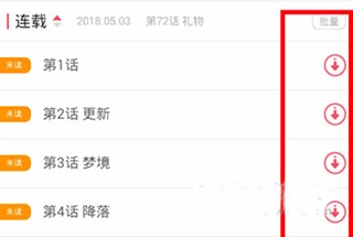 然后在漫画的详情页面,滑动页面找到目录列表,点击目录列表右侧的按钮,就能直接缓存漫画章节了。
