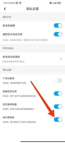 关闭【排行榜隐身】功能,隐藏自己的排名。