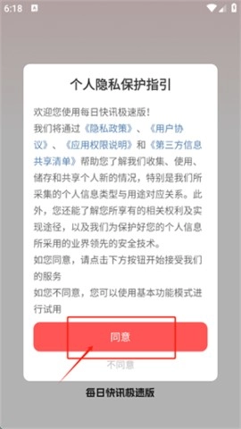 打开软件,点击同意隐私协议,准备获取信息。