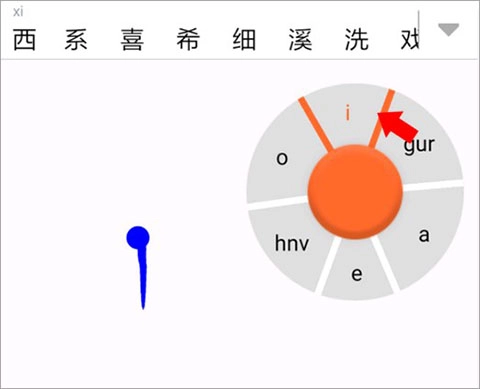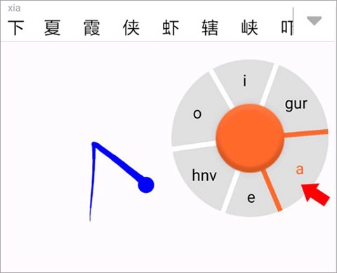 3、滑行输入--以“虾”为例,点击“X”