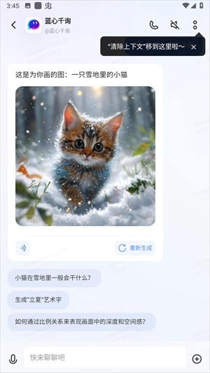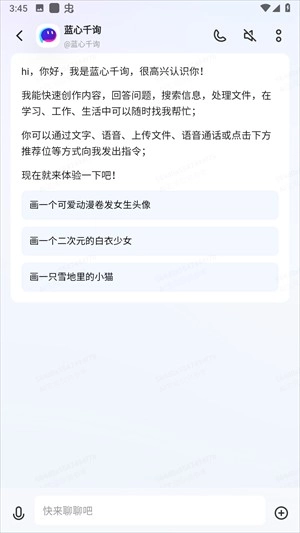 8、语音通话:新加入的语音通话功能,使用户能够借助语音和AI助手开展更自然的互动,达成更高效的交流。