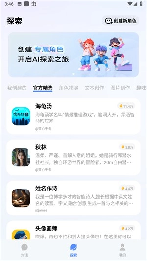 3、用户可以创建新角色来获取到新的个性伙伴聊天使用;