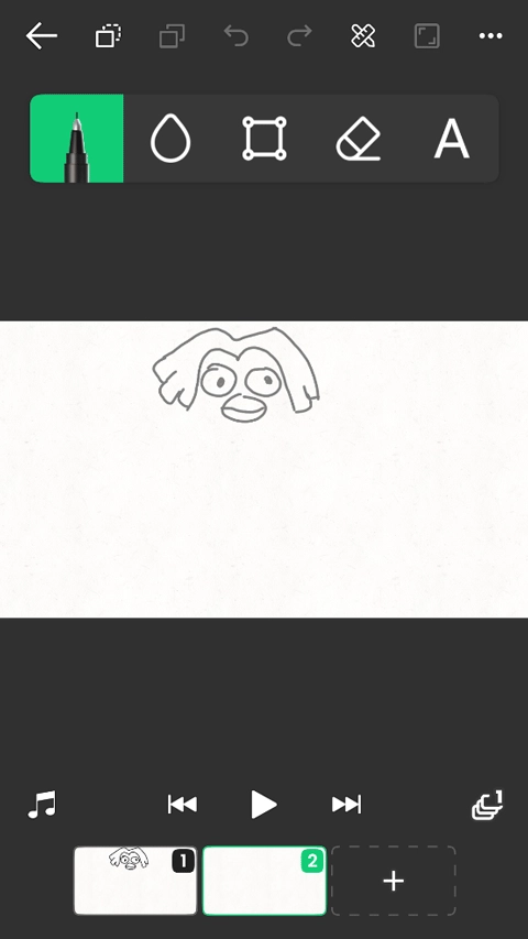 3、接下来就可以着手创作了,先在一块画布上绘制出你想要的图案,然后点击下方按钮再创建一块画布并画出不同的图案,最后点击下方的播放按钮就能实现动画效果了。