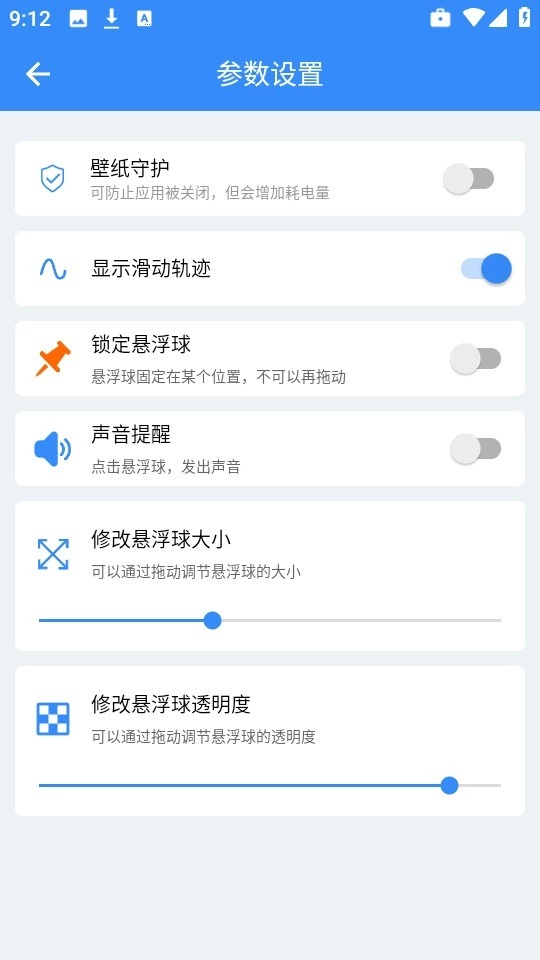 7、还可以自定义修改悬浮球大小以及悬浮球的透明度。