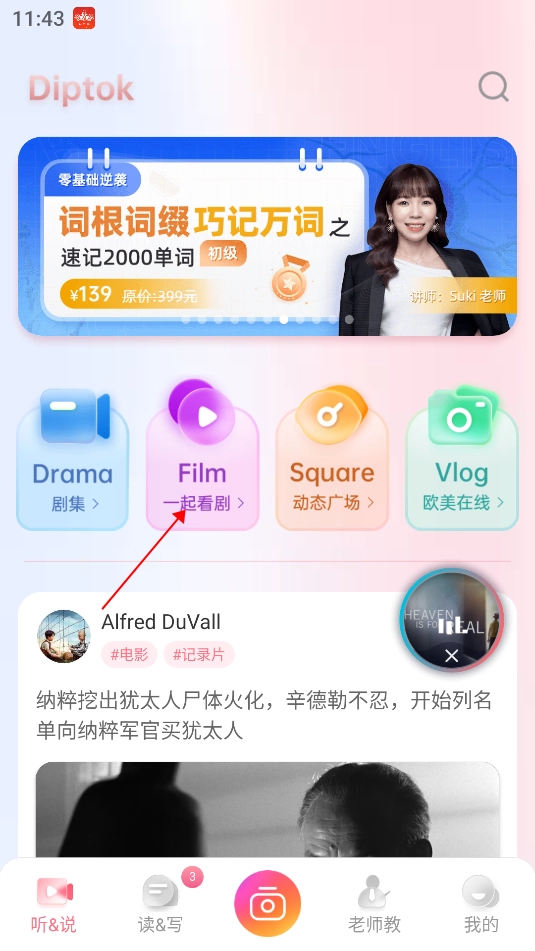 3、还有更多精彩有趣的功能等着你来体验;外文在线Diptok,开启专属于你我的外文生活。