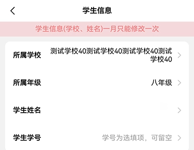 3、接着就能够修改学生的学习情况、所在年级以及姓名等信息,但要留意一个月仅能修改一次,务必谨慎操作。