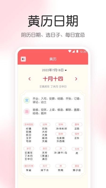 5.黄历:阴历、黄历、历法、万年历、周,一目了然,还可以查宜忌。