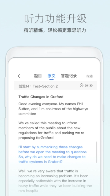 3. 接着依据自身的口语水平,每天都能在线阅读平台提供的语音阅读材料。