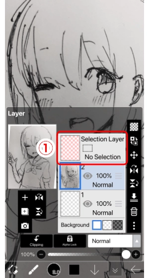 现在我们有三个图层。背景为粉红色的那个图层叫①选择层,它是一个特殊图层,你可以用画笔或橡皮擦工具在上面创建选区。我们建议新手暂时不要使用这个图层。