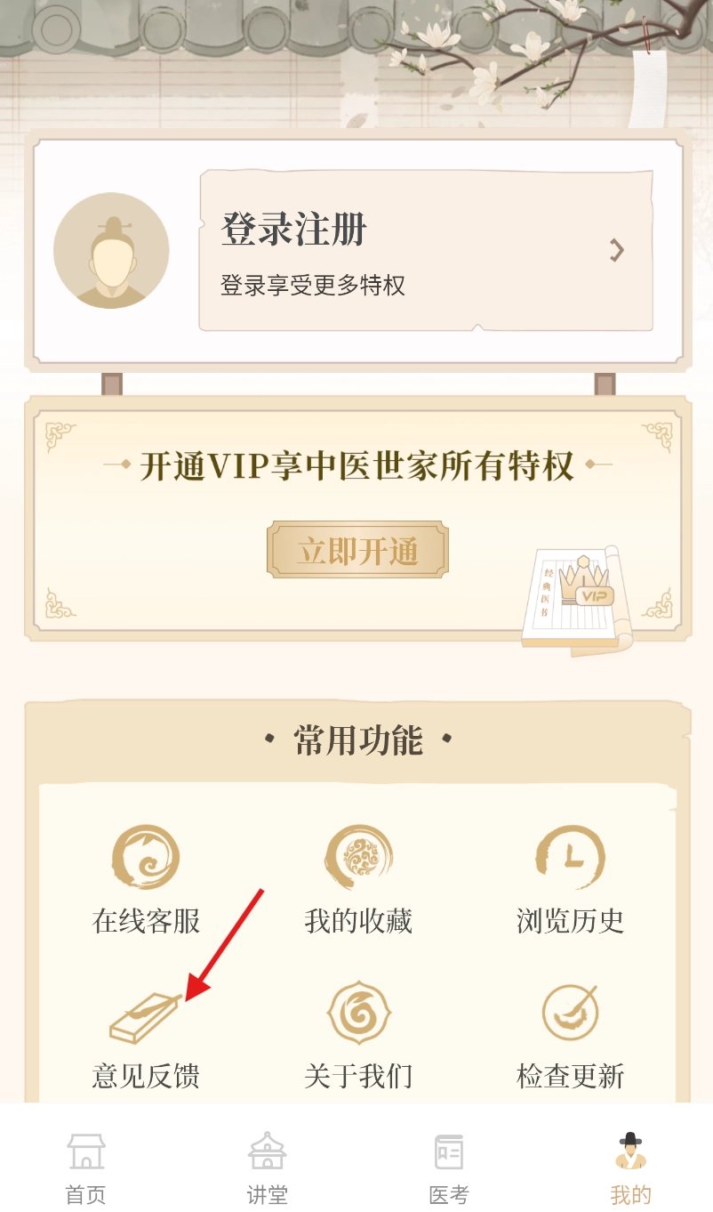 1、启动中医世家应用,在主界面底部找到“我的”选项,点击进入个人中心页面。