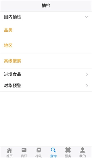 4、进入后可以看到更加详细的分类,比如国内抽检等。