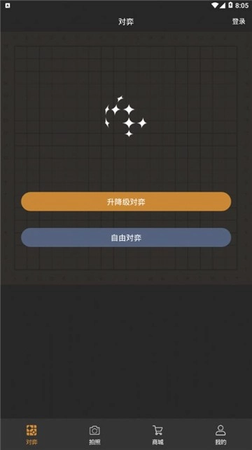 1、安装好软件后,打开软件可以看到有对弈、研究、复盘报告、拍照识别等;