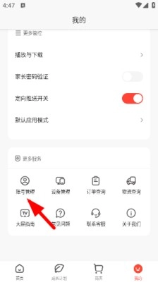 2、接着在我的页面滑动下方,就能看到账号管理的选项。