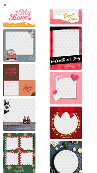 3、照片拼贴功能,100多种布局和背景;