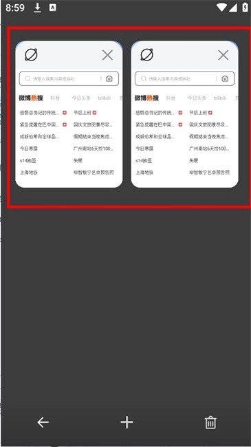 2.在多窗口页面后点击【+】号