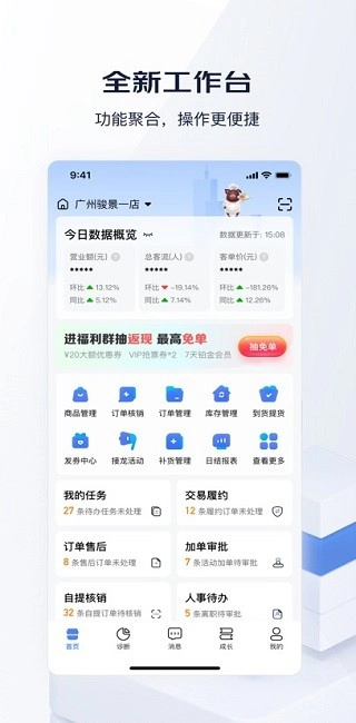 助力商户更高效地完成订单处理、会员管理、店务操作及实时经营数据查看