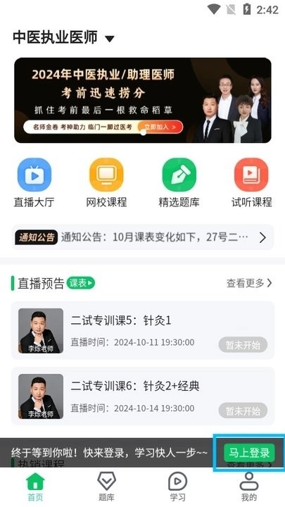 录播直播全面覆盖,支持离线观看,让您随时随地,想学就学,助您医考成功上岸。