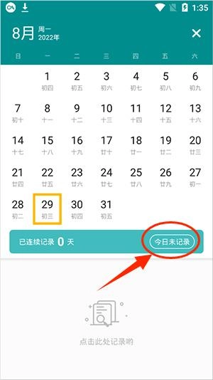 2、选择今日日期后点击记录,接着称重并填写今日体重,再点击记录。
