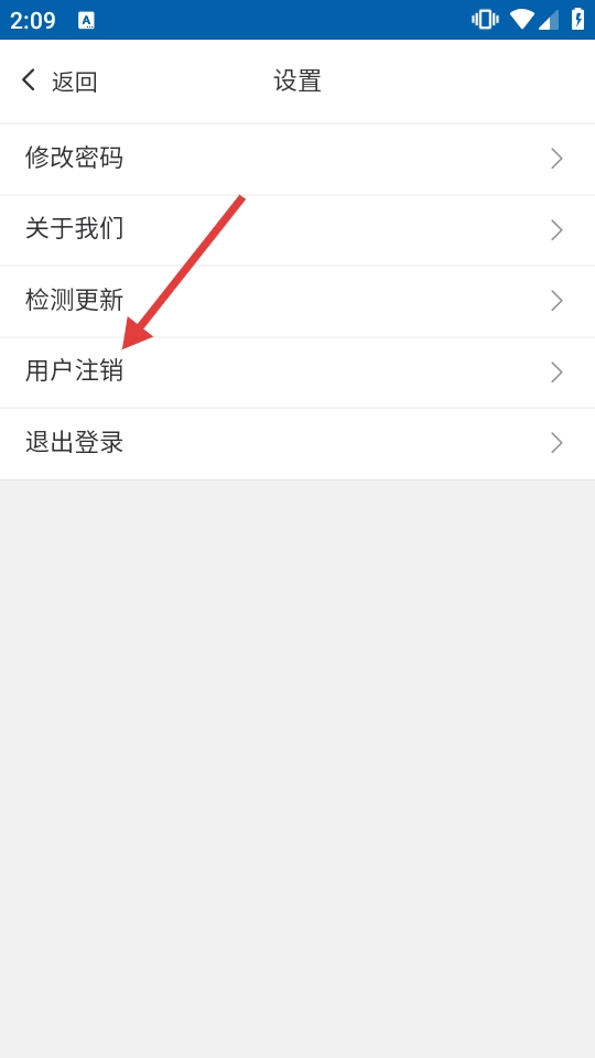 3、在设置页,选择【用户注销】,进入注销提示页。