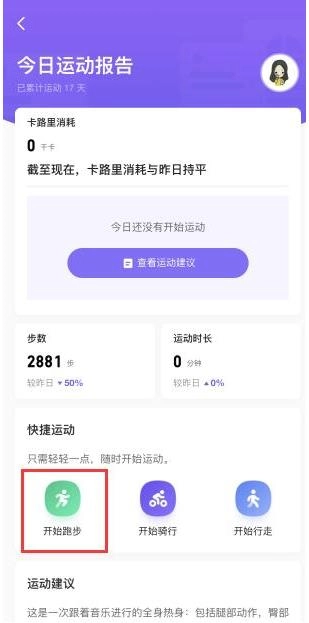 4、无论是在户外跑步还是使用跑步机,只要点击“开始”按钮,就能记录跑步的公里数。