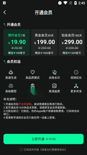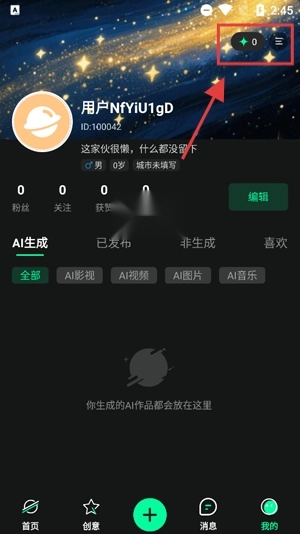 打开你的恒星AI,在个人中心点击右上角的星币功能。