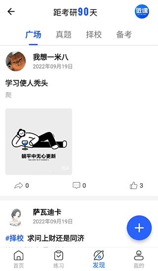 3、在发现页面,考生既能浏览学长们分享的经验心得,也能在此发布自己的看法与经验。