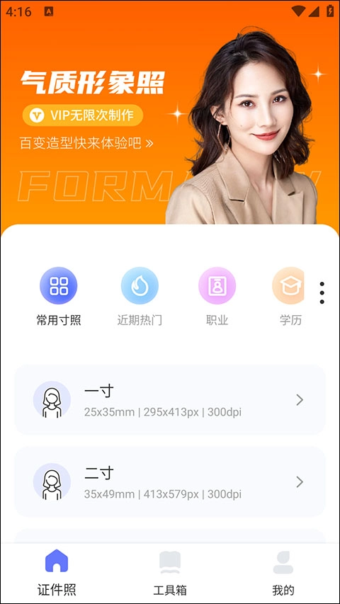 打造专属于你的证件照,智能证件照功能支持一键美颜,助你轻松拥有美美的证件照。