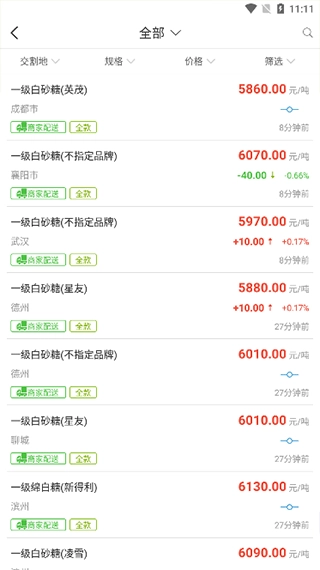 3、点击进入行情页面后,即可在平台上查看农产品的交易行情信息