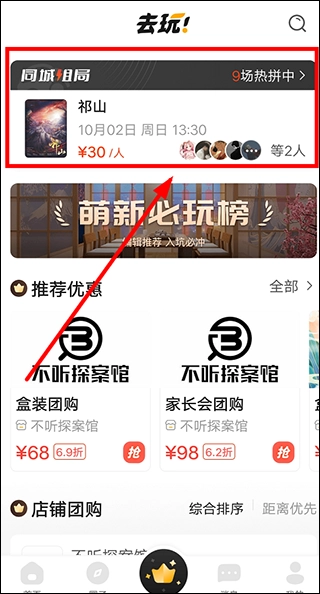 5、要是不想自己组局,也能在【同城组局】页面里,参与其他人发起的剧本杀组局。