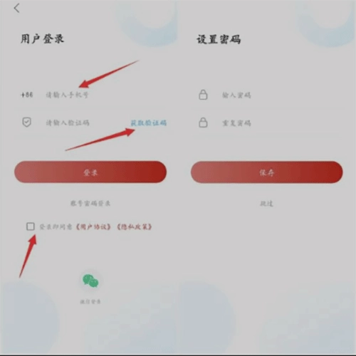 3、接着会跳转至登录页面,若尚未注册账号,可直接输入手机号,获取验证码后系统将自动完成注册流程,随后页面会跳转至密码设置界面。