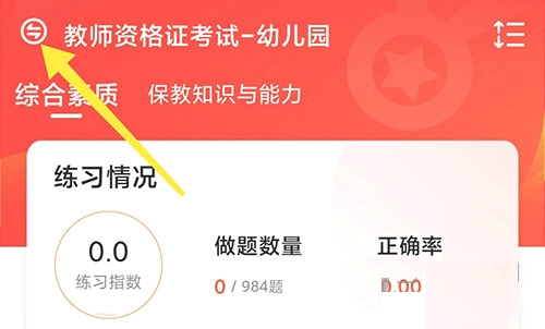 1、从山香网校底部菜单栏进入题库页面后,点击左上角的双箭头按钮;