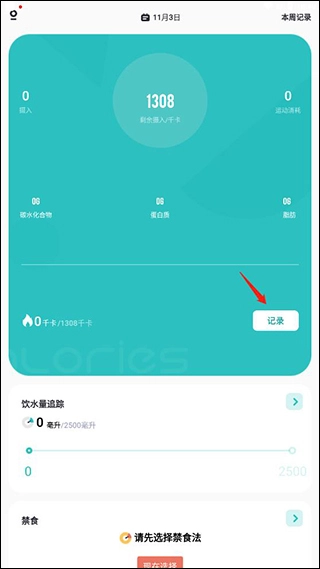 1、在本站打开软件,点击记录就能开始记录食物的热量。