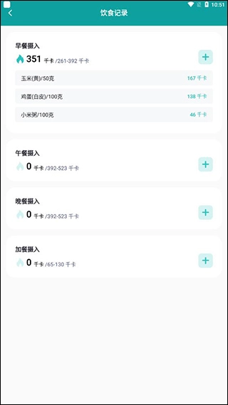 7、在饮食记录中就能查看你每一餐所摄入的能量。