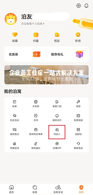 2、点击邀请我的同住人即可