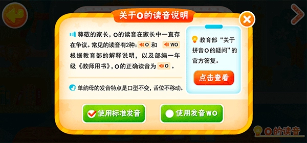 3、进入关卡后,会先通过一段小故事引出拼音,故事结束后,会对每一个拼音逐一进行讲解。