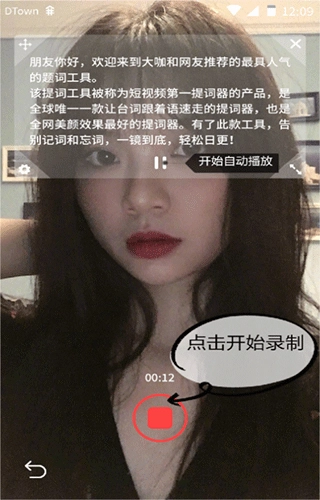 5、如若选择【拍摄提词】,点击录制按钮即可开始拍摄。