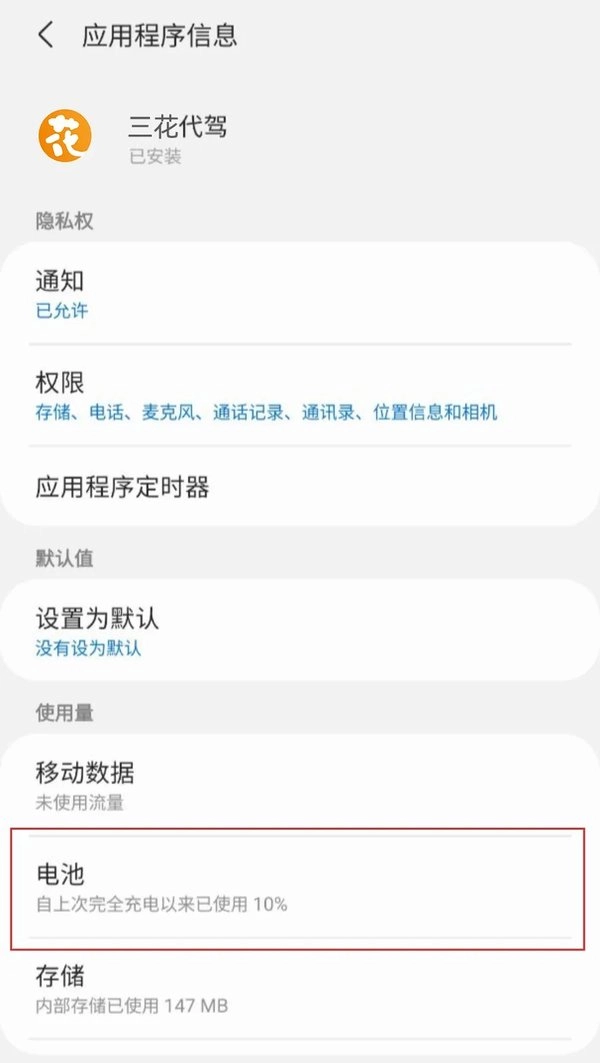6、回到【智能管理器】页面,点击【应用程序信息】,找到三花代驾后点击【电池】,操作步骤如下图所示: