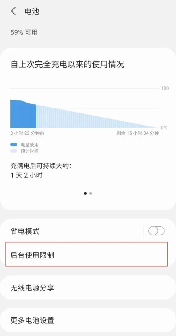 2、电池中点击【后台使用限制】如下图所示: