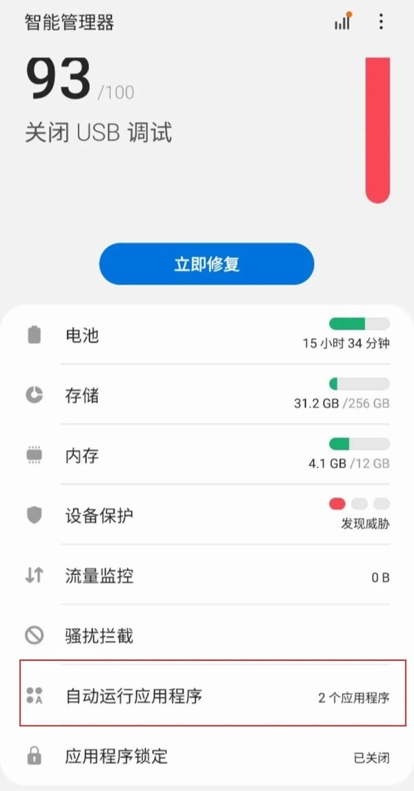 4、回到【智能管理器】页面,点击【自动运行应用程序】,操作界面可参考下图: