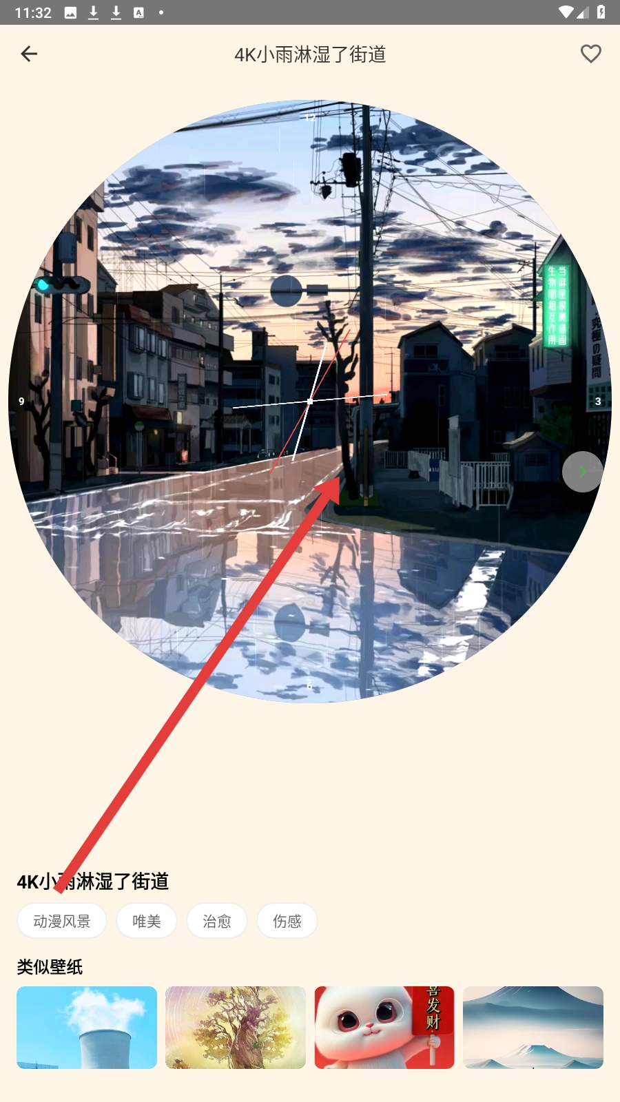 2、点击喜欢的表盘,如【4K小雨淋湿了街道】,进入详情页进一步了解。