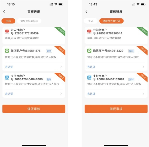 10、点击【审核进度】可查看总店和分店的审核状态