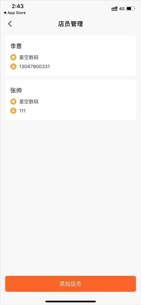 3、创建完毕后即可在店员管理里生成店员信息