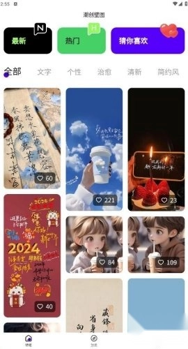 潮创壁图是一款助力用户实现极致个性化的手机美化应用,拥有涵盖二次元、风景、插画等多元类型的丰富壁纸资源,能精准契合不同用户的多样需求。其操作便捷,所有壁纸均可一键设置,还能依据用户当日心情实时切换使用。此外,应用每日会定时更新最新壁纸,始终紧跟时代潮流步伐。