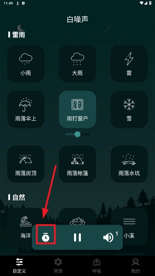 2、自定义混音:您可以自定义让自己感到舒心的白噪声,具体方式是将3种默认背景音频混合到一个白噪音中。