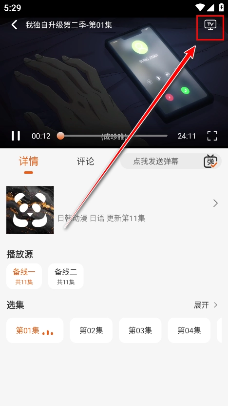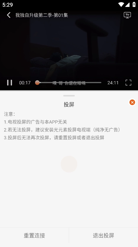 3.点击影视播放页面的TV投屏按钮后,App便会开始搜索相关的电视设备