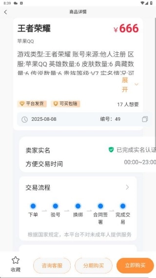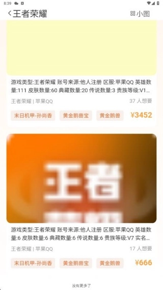 1、为了助力买家做出明智抉择,这款应用提供了详尽的账号信息,涵盖等级、装备、成就等内容。
