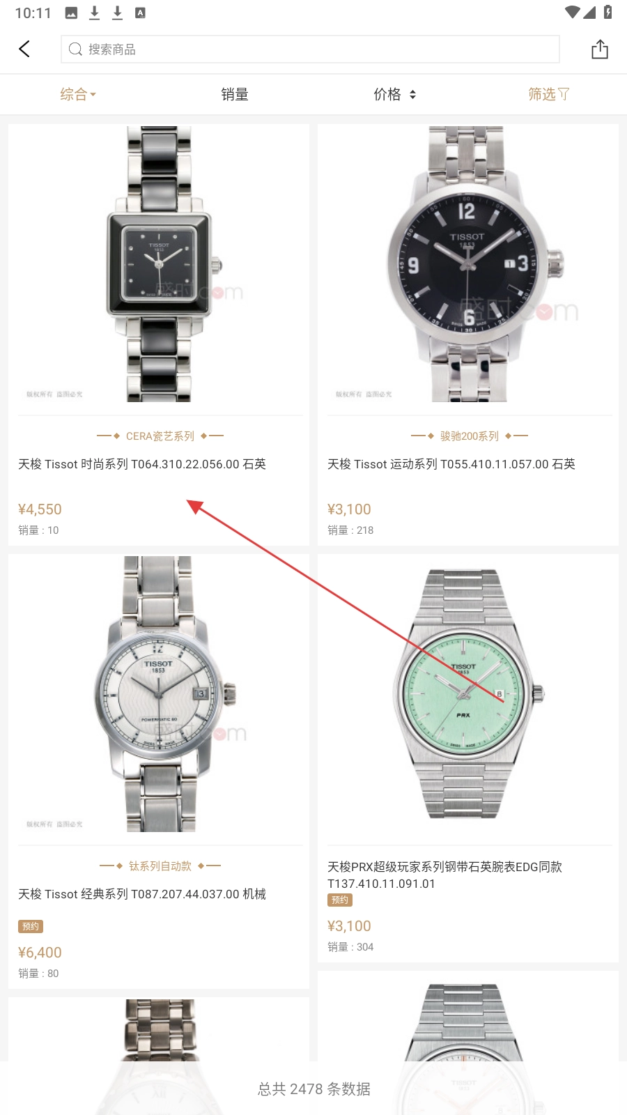 3、在商品列表里,点击心仪手表商品,进入商品详情页面。