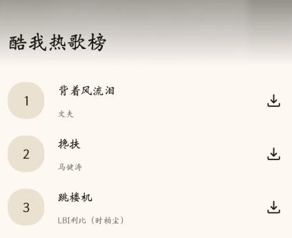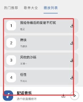3.任意点击一个榜单,可以看到推荐的歌曲