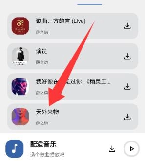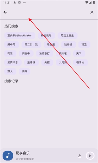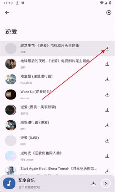 3.App打开App后会立刻显示多个搜索结果,你可以从中挑选自己喜欢的歌曲,然后点击图中所示的位置。